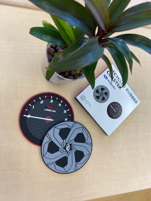 来場プレゼントがメーターとホイールのデザインの少し大きめコースターです![]()