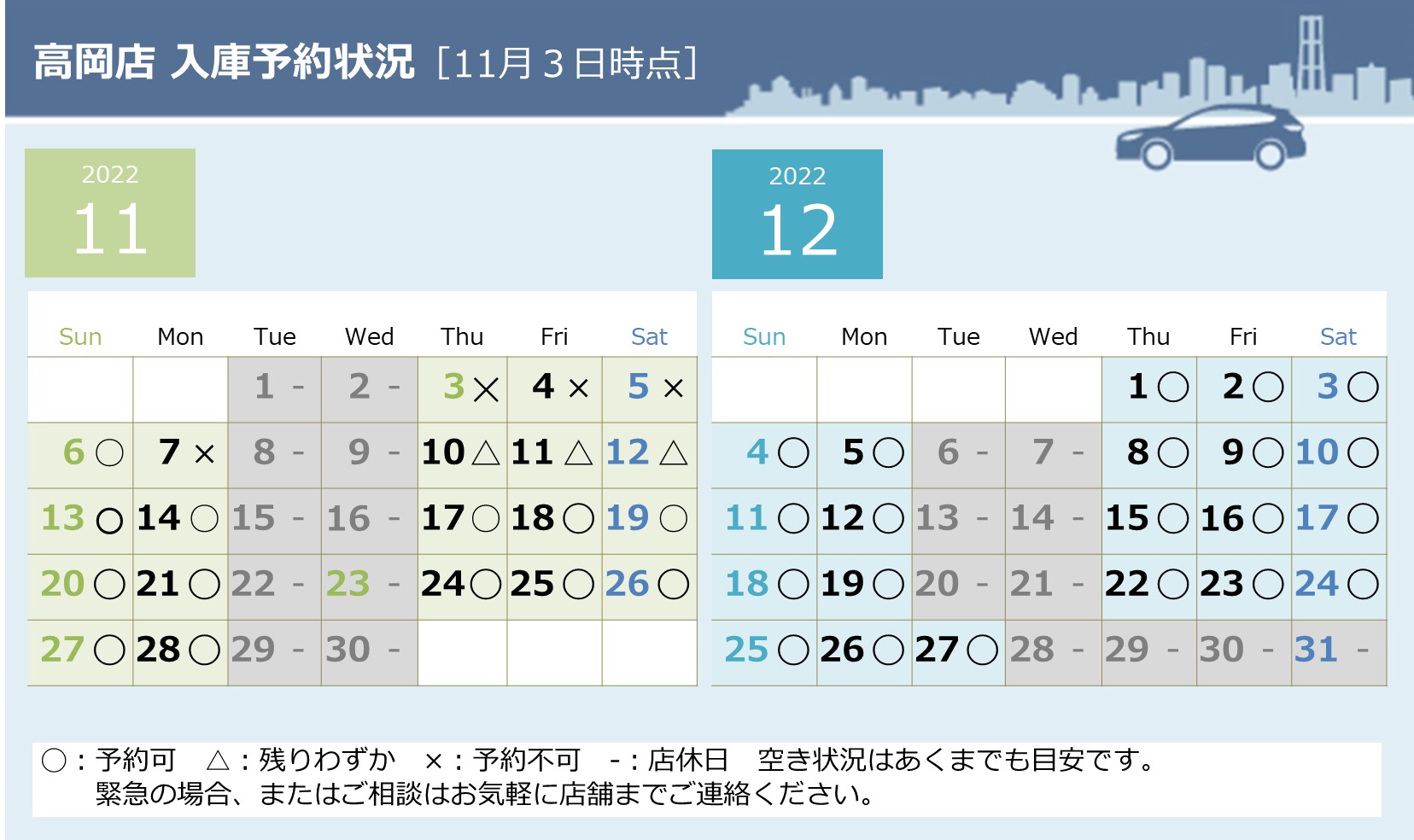 続きまして、月も変わりましたので11月、12月の工場の空き状況です![]()
