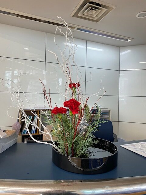 クリスマスということでショールームの生け花もクリスマス仕様です![]()