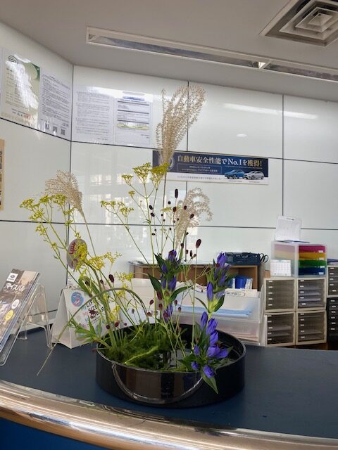 秋の多種挿しでススキ、リンドウ、ワレモコウ、オミナエシ、立日陰で秋の写景を表現しております![]()