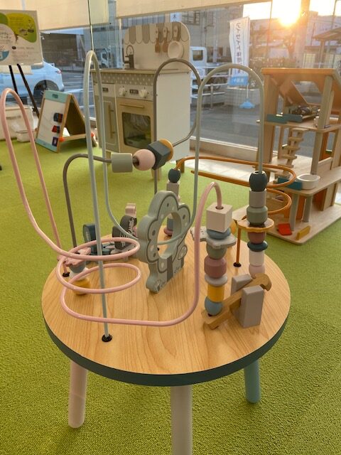 今回のキッズコーナーは木をコンセプトにしたおもちゃを定期的に新しいものに交換させて頂いているので