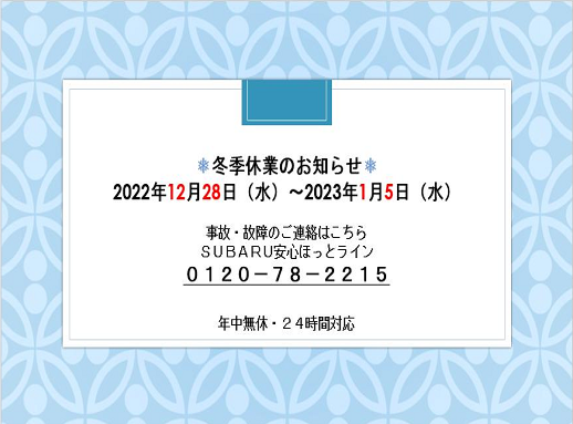 2022年12月28日から2023年1月5日までお休みします。