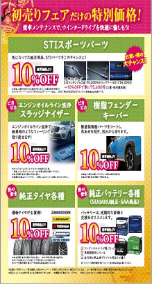 STI商品や純正バッテリー、タイヤなどが10%オフ!!