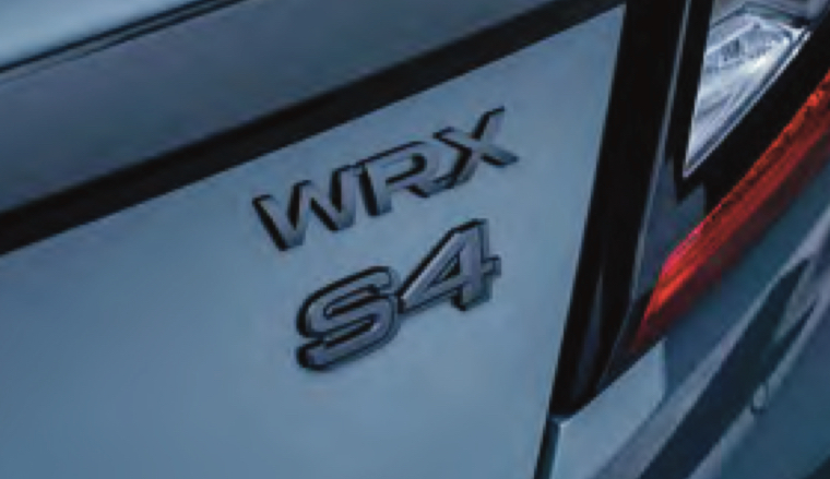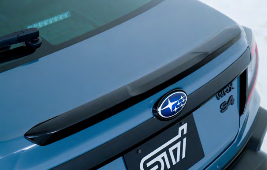 リヤの WRX S4 のエンブレムはラスターブラック塗装、