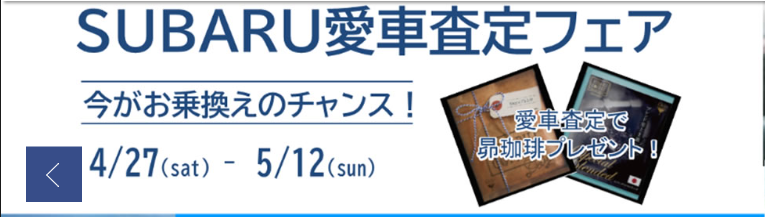 4月27日(土)から5月12日(日)までは SUBARU愛車査定フェア を開催しております。