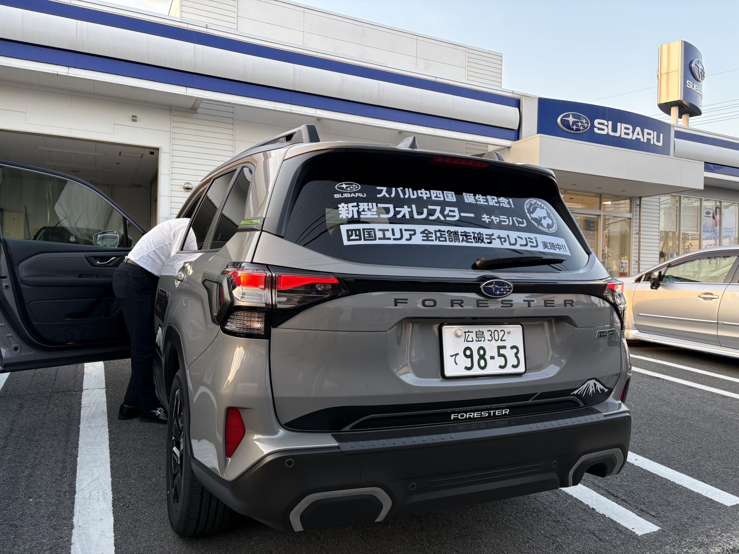 昨日松山インター店に「スバル中四国 誕生記念!新型フォレスターキャラバン」の車両がやってきました!
