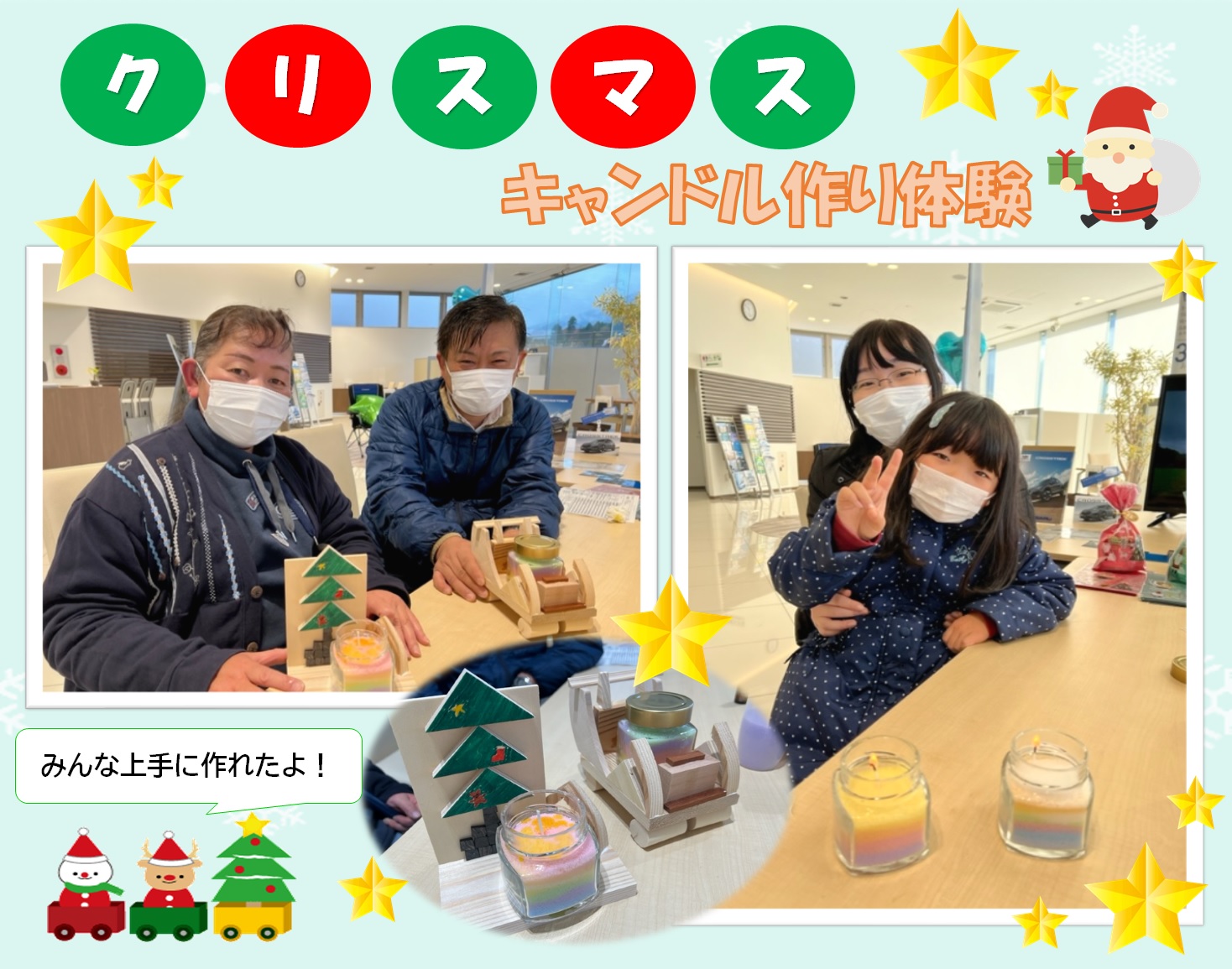 さてそんな寒い中で、先日の展示会では多くのお客様がご来店され、四国スバル独自イベントとしてクリスマスキャンドル作りを行いました!