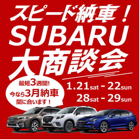 また1月21日(土)-22日(日)、28日(土)-29日(日)の2週連続で、スピード納車!SUBARU大商談会を開催します!