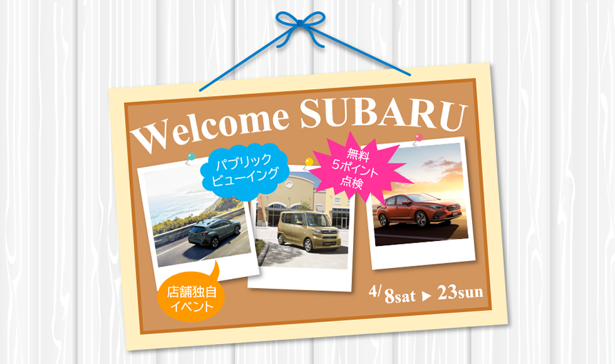 さて前回に続き、4月23日(日)までの期間中、Wellcome SUBARUを開催中!
