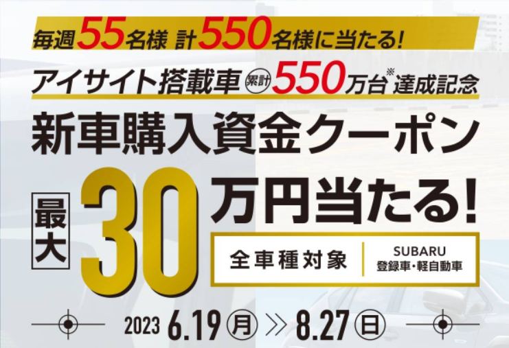 新車購入時にお使いいただけるクーポンが当たるチャンスです。