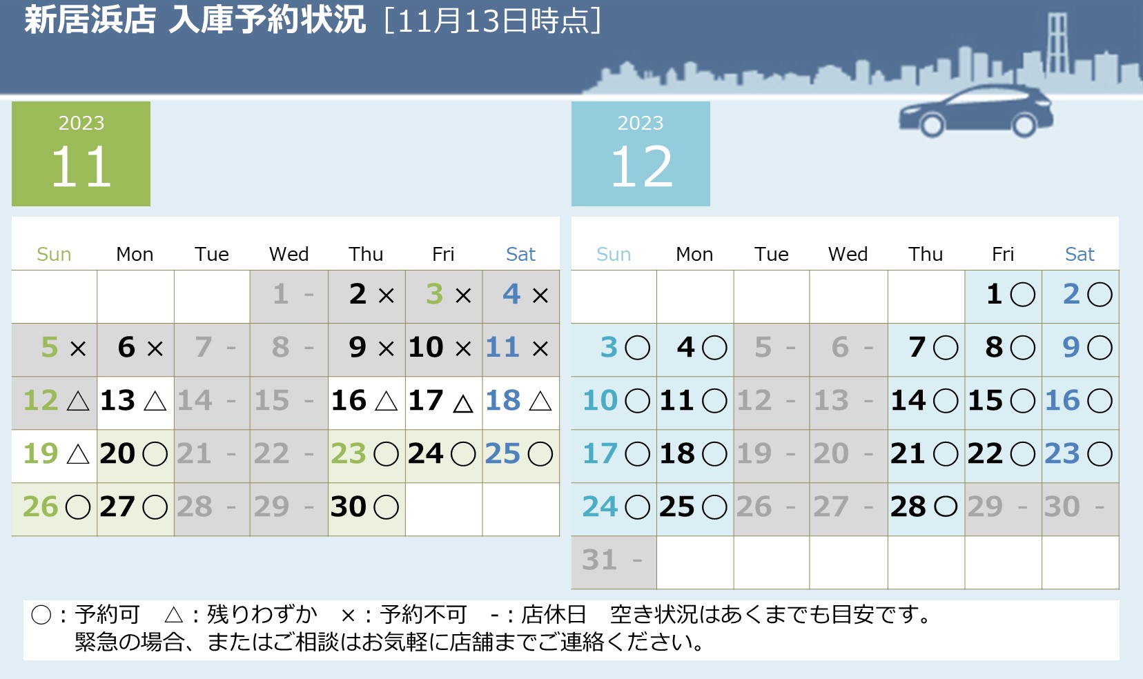 ★☆★11/13現在の入庫予約状況★☆★