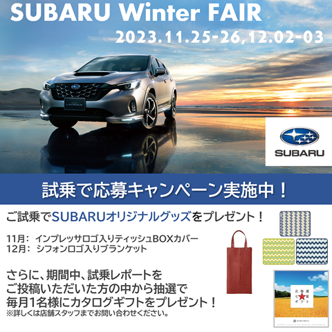 ご試乗いただきますとSUBARUオリジナルグッズをプレゼント!!