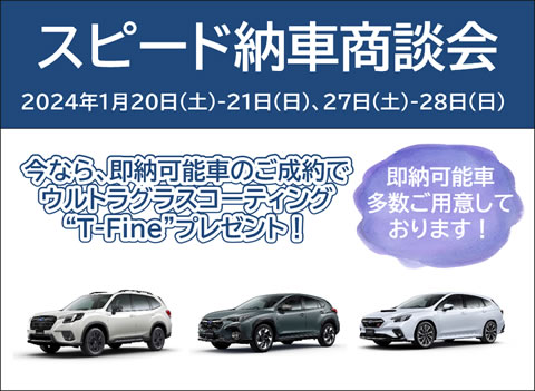 1/20(土)ー21(日)・27(土)ー28(日)に、スピード納車商談会を開催します!!