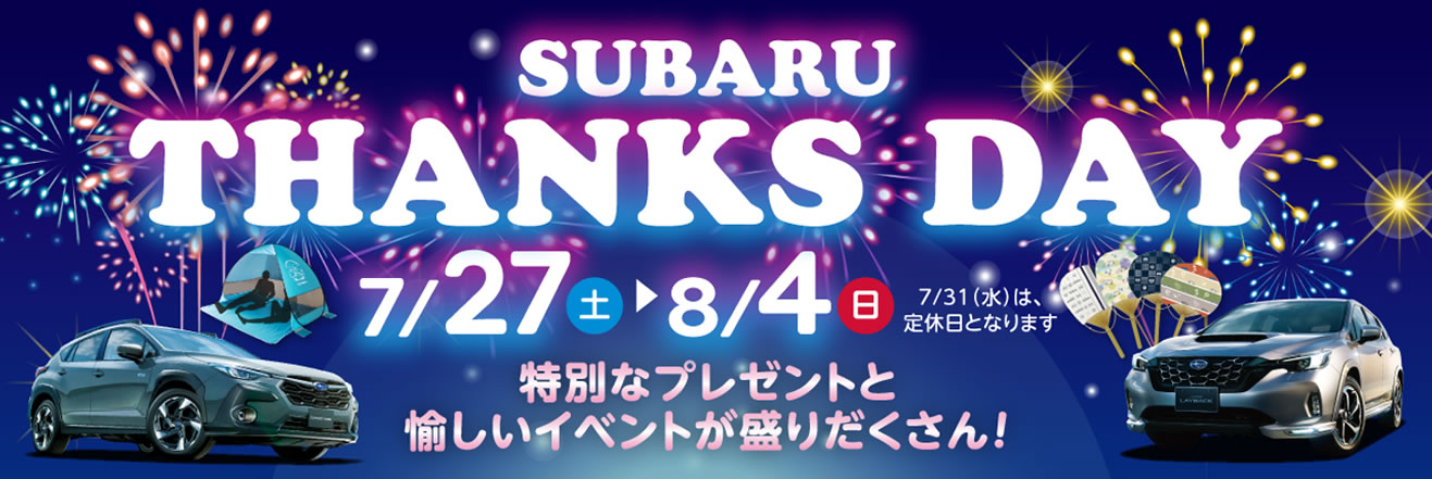 日頃皆様からご愛顧を賜り、その感謝の気持ちを込めてSUBARU THANKS DAYを開催します。