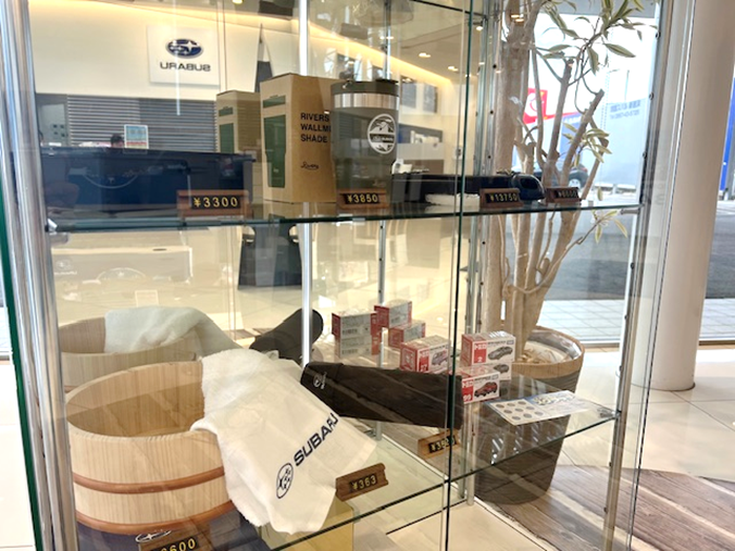 その第一歩として、SUBARUのオンラインショップにある一部の商品を、ショーケースにいれて展示してみました!