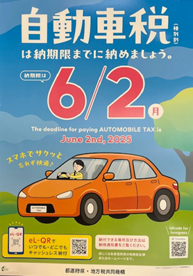 あ、すでにお支払されているかと思いますが、今年度分の自動車税の納付をお忘れなく!