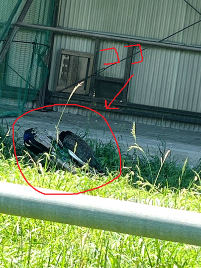 その近くにクジャクの小屋があるということなので、見に行きました。