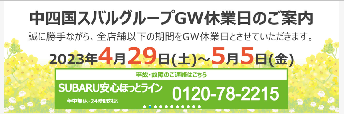 さて、四国スバルは4/29~ 5/5まで長期休業いたします![]()
