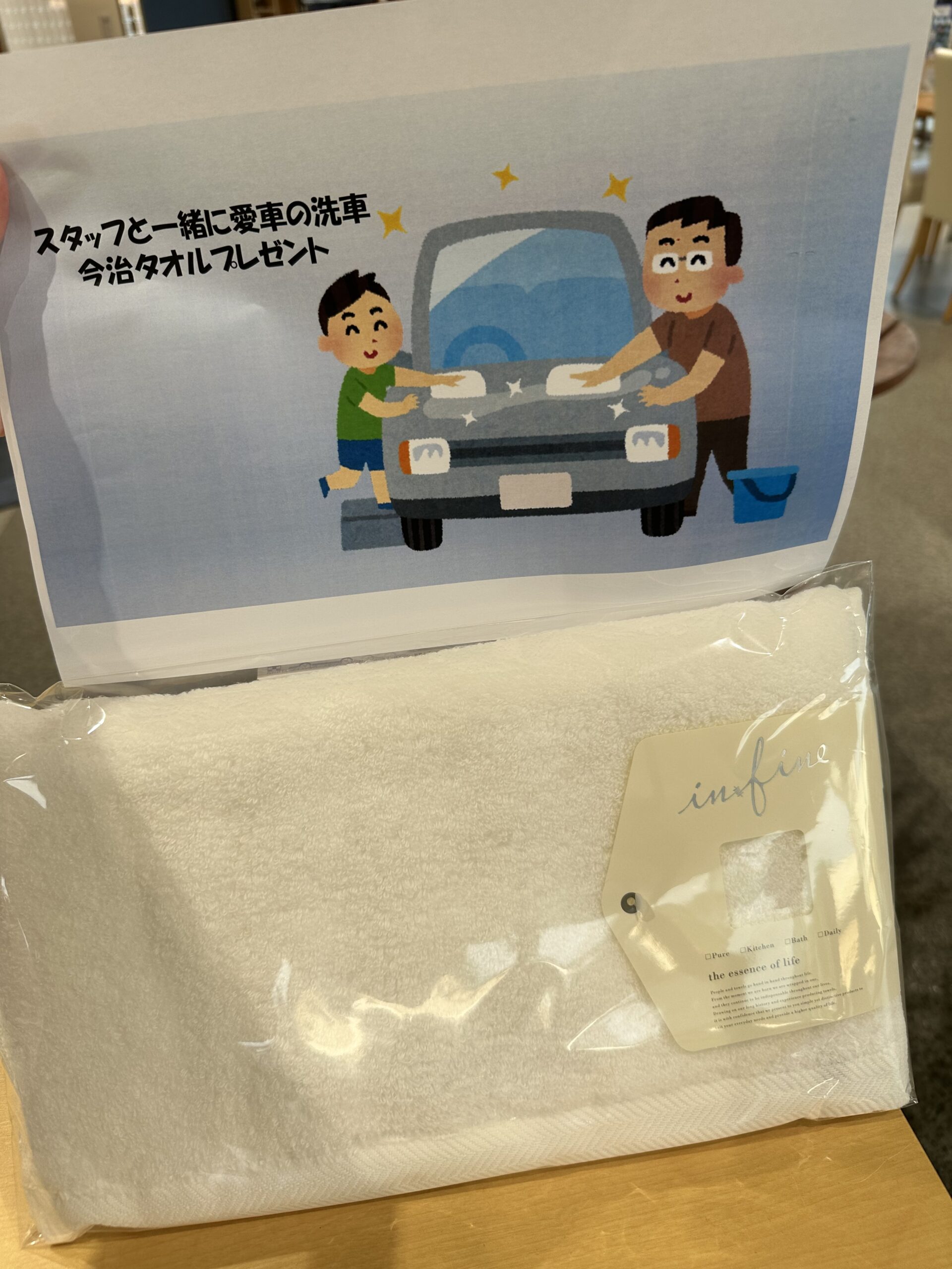 【スタッフと一緒に愛車の洗車】今治タオルプレゼント!