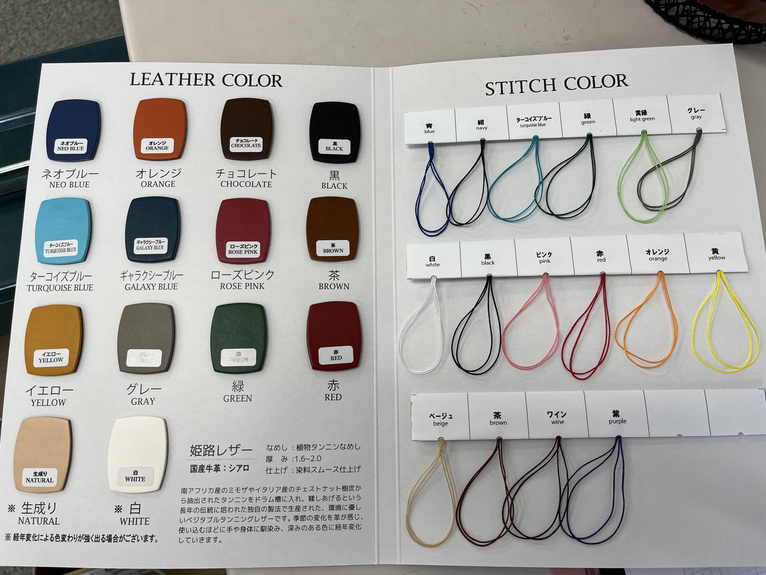 14色のレザーと16色のステッチを組み合わせて、自分だけのオリジナルキーホルダー作れます!