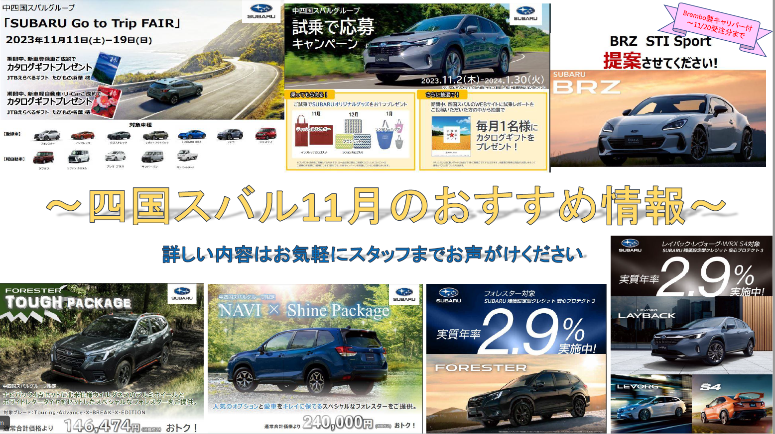 また、いろんな11月のキャンペーンがありますのでその他の車もお買い得にできますよ!!