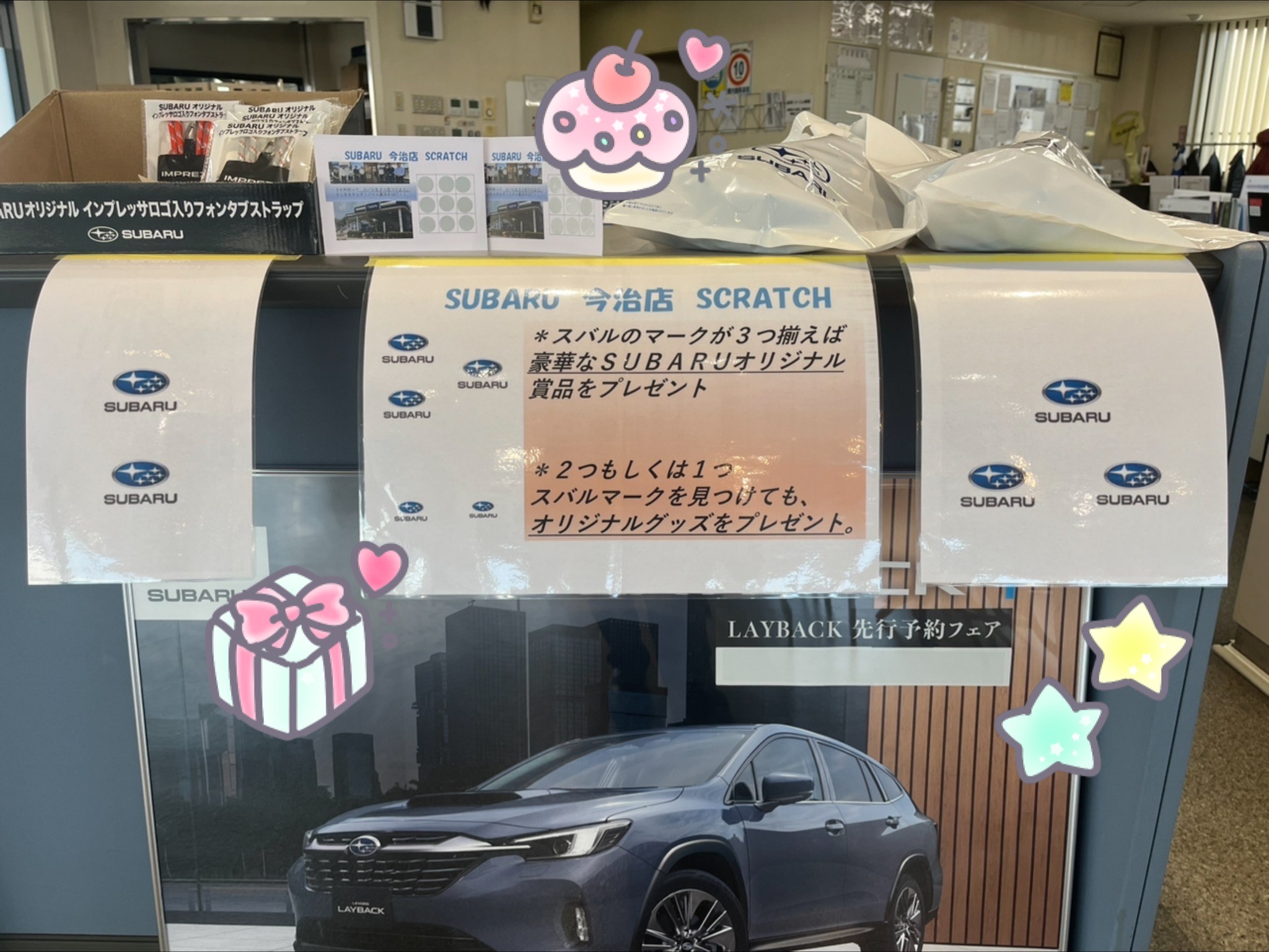 9個の枠から三か所削っていただき、3つのスバルマークが現れた方には・・・