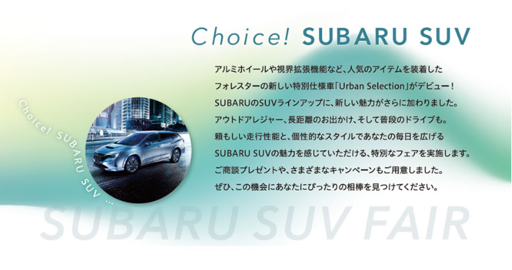 SUBARU SUV FAIR 7/6(土)~7/7(日)、