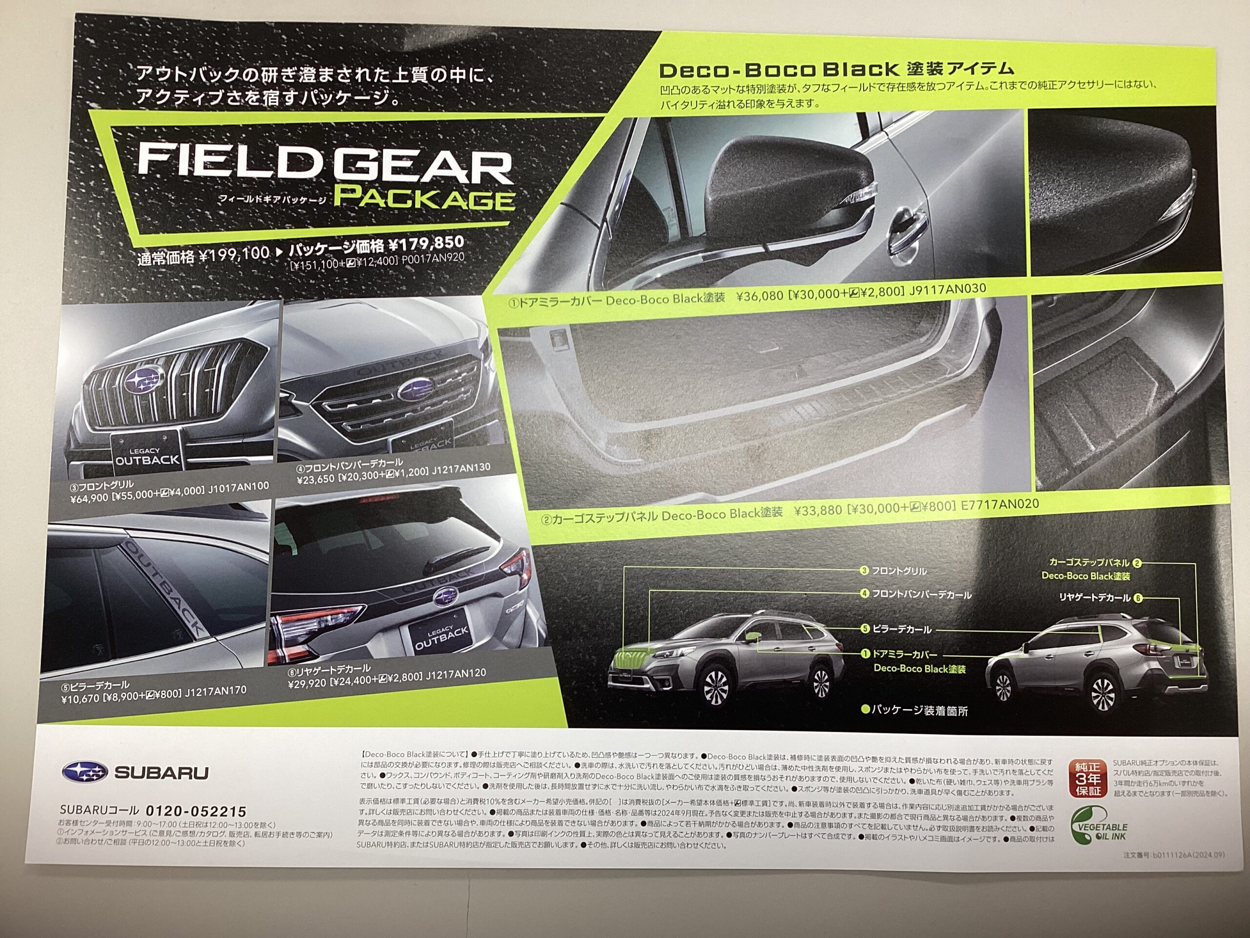 最後に、レガシィアウトバックのオプションでお付けできるフィールドギアパッケージについてです。