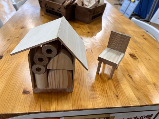 かわいらしいサイズ感の家と椅子が出来上がりました!(笑)
