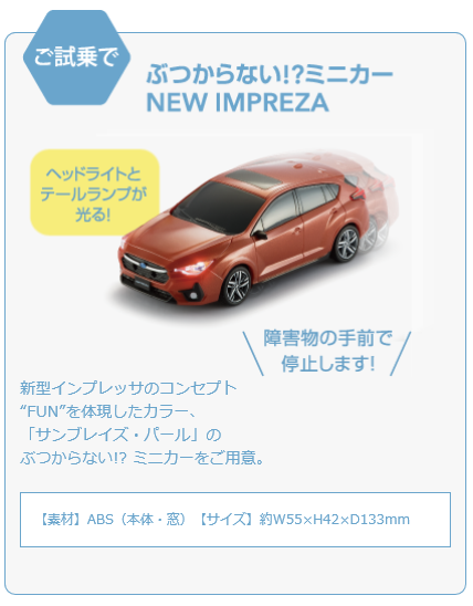 ぶつからない!?ミニカーNEW IMPREZAバージョンをプレゼントいたします♪
