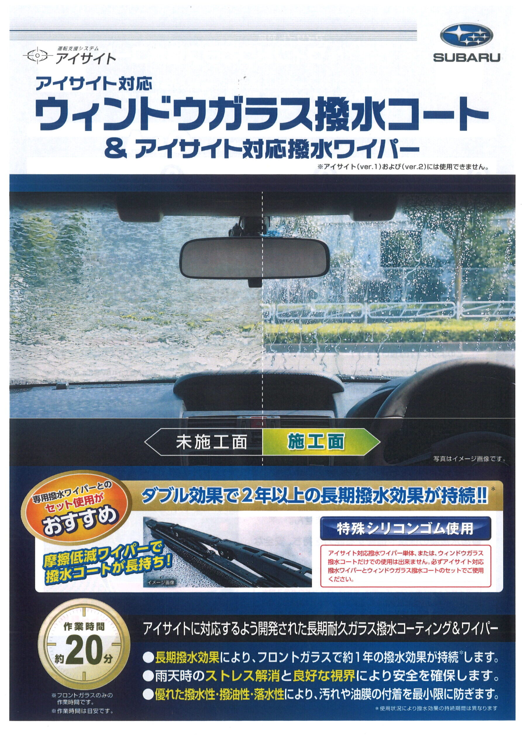 ※必ずアイサイト対応ウィンドウガラス撥水コートと撥水ワイパーのセットでご利用下さい