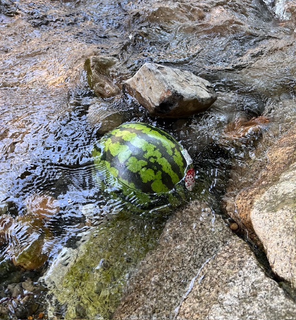 川の水できんきんに冷やしたスイカでスイカ割りをして食べたり、、