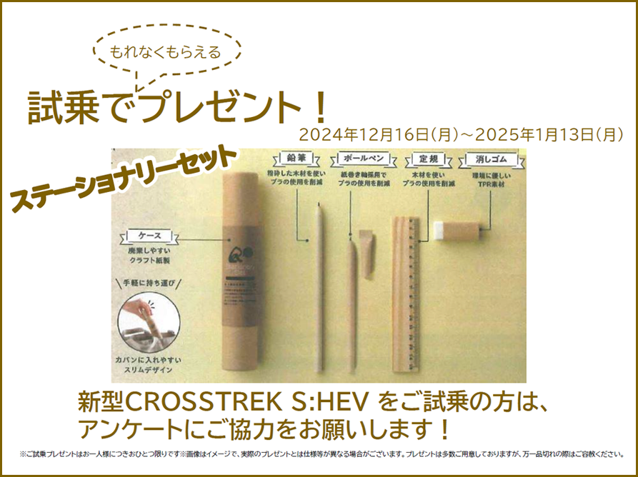 12月16日(月)~1月13日(月)期間中にクロストレック×ストロングハイブリッド搭載車にご試乗して頂いた方には