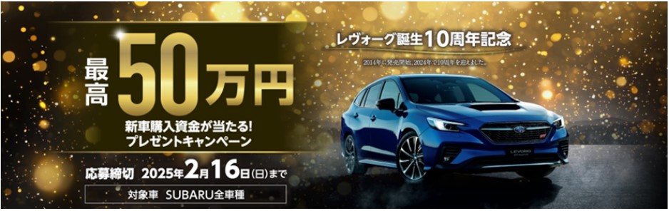 また、購入資金キャンペーンとして抽選ではありますが、新車購入資金として50万円が当たる、かも?