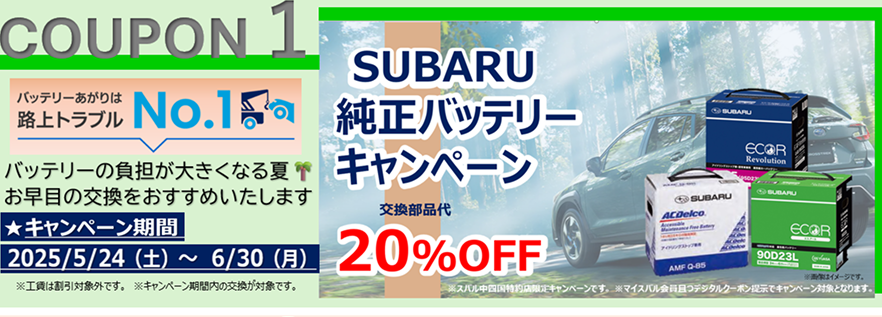 スバル中四国ではマイスバルクーポンを配信しております♪