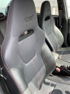 専用のバケットタイプSTIシートが標準やん、ゴージャス。 気分はレーサー。