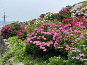遊歩道を歩くとたくさんの紫陽花が見受けられますよ。