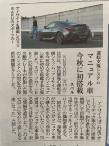 昨日の朝刊にて。スバルのスポーツクーペ SUBARU BRZ に6速マニュアル車にも「アイサイト」が搭載になります。 物凄い技術だね~