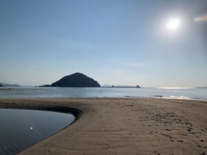 ここは松山市北条の通称「モンチッチ海岸」です。 この日結婚式の前撮りをされてるお二人がいました。