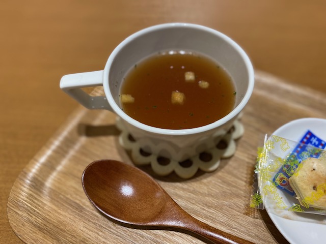 某航空会社の機内で提供されている「コンソメスープ」です。スーパーのスープコーナーでも売られているという実力派です。