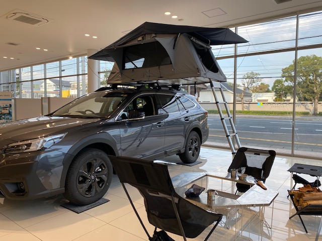 スーリーさんのルーフテントを装着したアウトバックを高知桟橋通店ショールームにて展示中です。