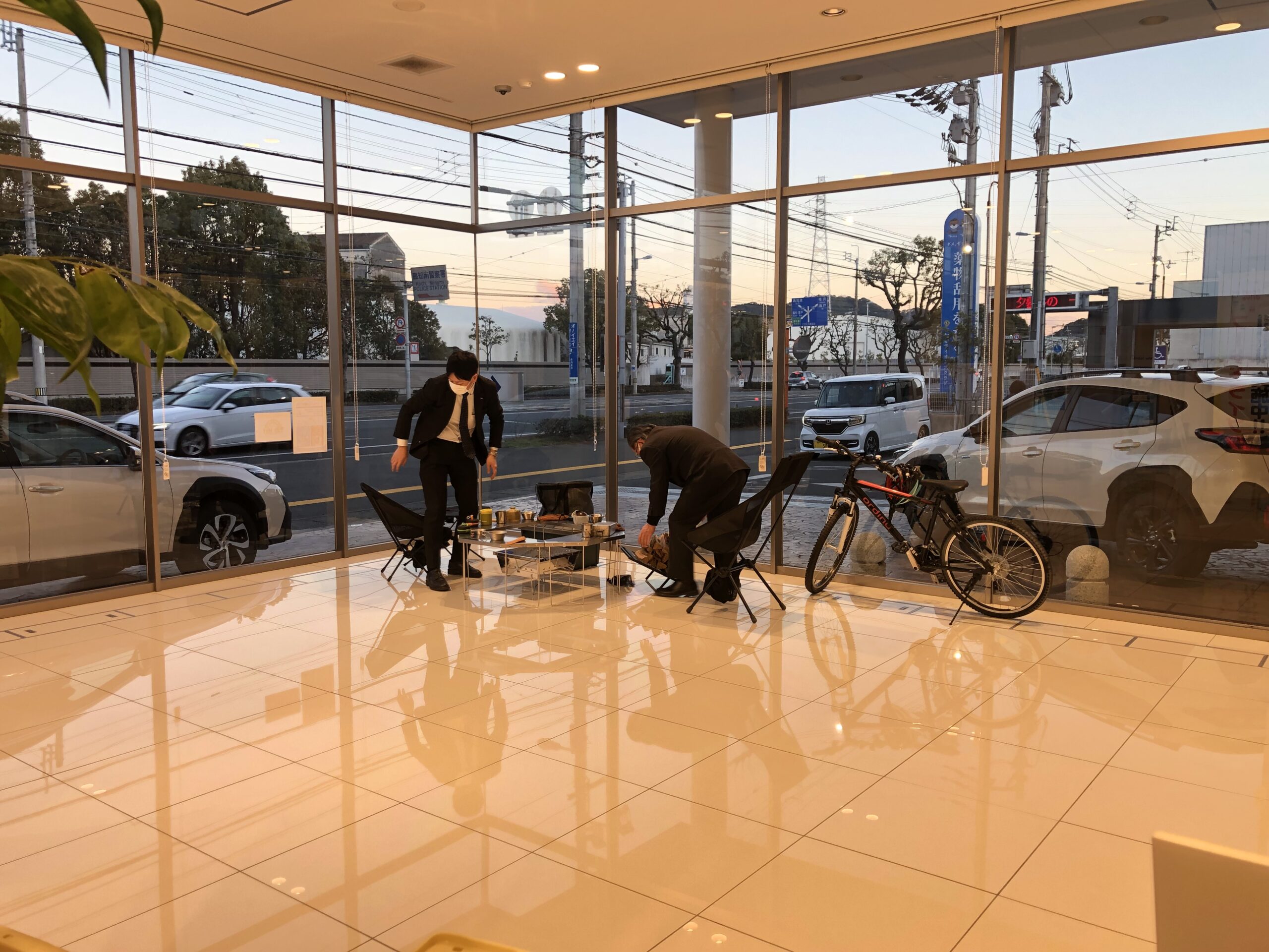 クロストレックを売りまくっているスーパークロストレックマイスター井上CAと業者さん専門のセールス前田さんが片付けを頑張っている様子を後輩の私は低みの見物です。