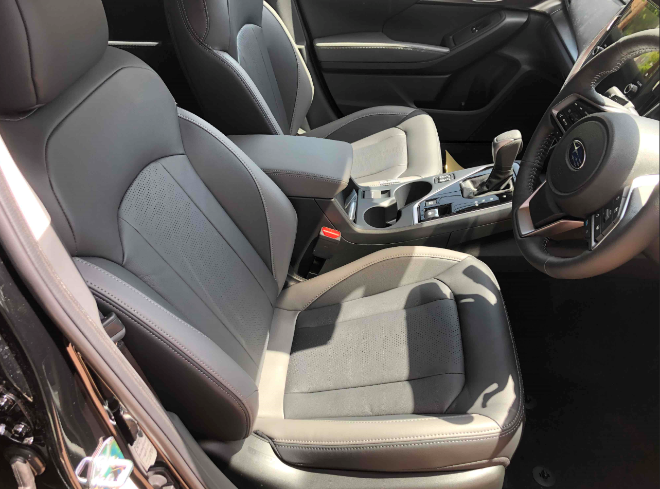 今回ご準備させていただた試乗車は内装にも拘りました。なんと本革シート!今までの本革シートより少し硬いかな?といった感じ。走行中の頭部の揺れを抑えるための新設計シートもあって、インプレッサを名を冠するのは少し違うような気さえします(良い意味です)実車にて確認をされたい方は是非、高知桟橋通店にご来店ください。