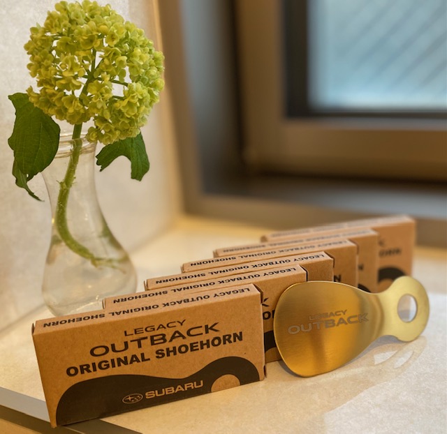 今週末のフェアでは来場プレゼントに OUTBACK のロゴ入り靴ベラをご用意。