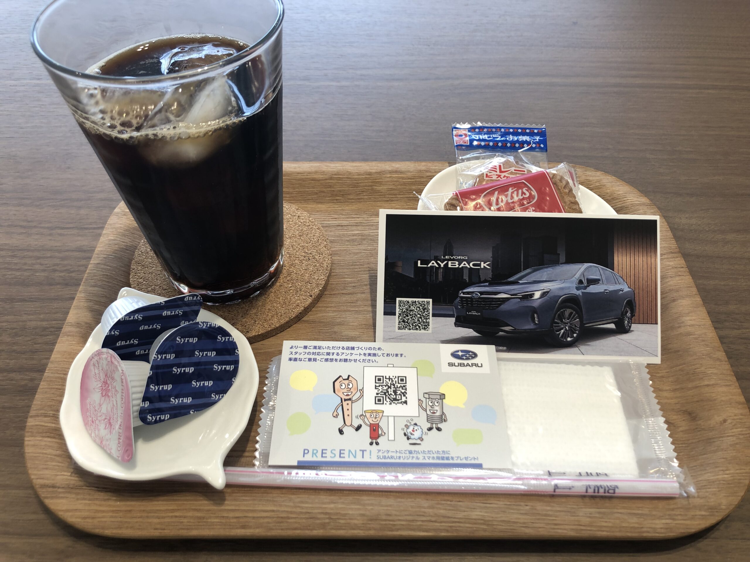 まずは皆さんに知って頂きたくて、お飲み物をお渡しする時にその時期に発表、発売している旬な新型車のご案内と、アンケートのカードを一緒にお渡ししています。