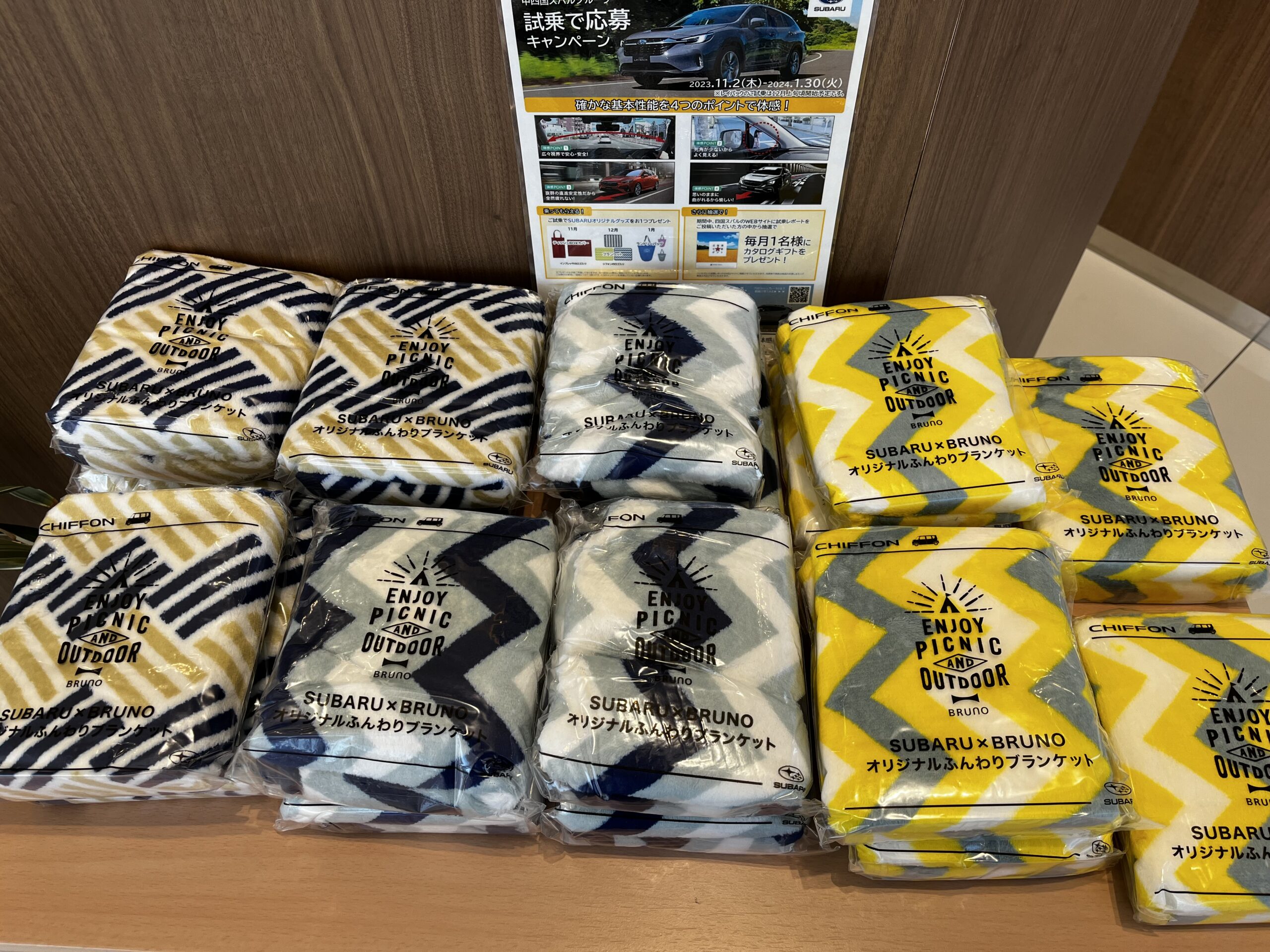 こちらは全国統一フェアです。うちにはレイバック試乗車到着しています。ぜひ先行展示に都合合わなかった方、これからはいつでも試乗できるようになっていますのでご来店お待ちしております。12月の試乗プレゼントはブランケットとなっております。試乗キャンペーンも継続中!