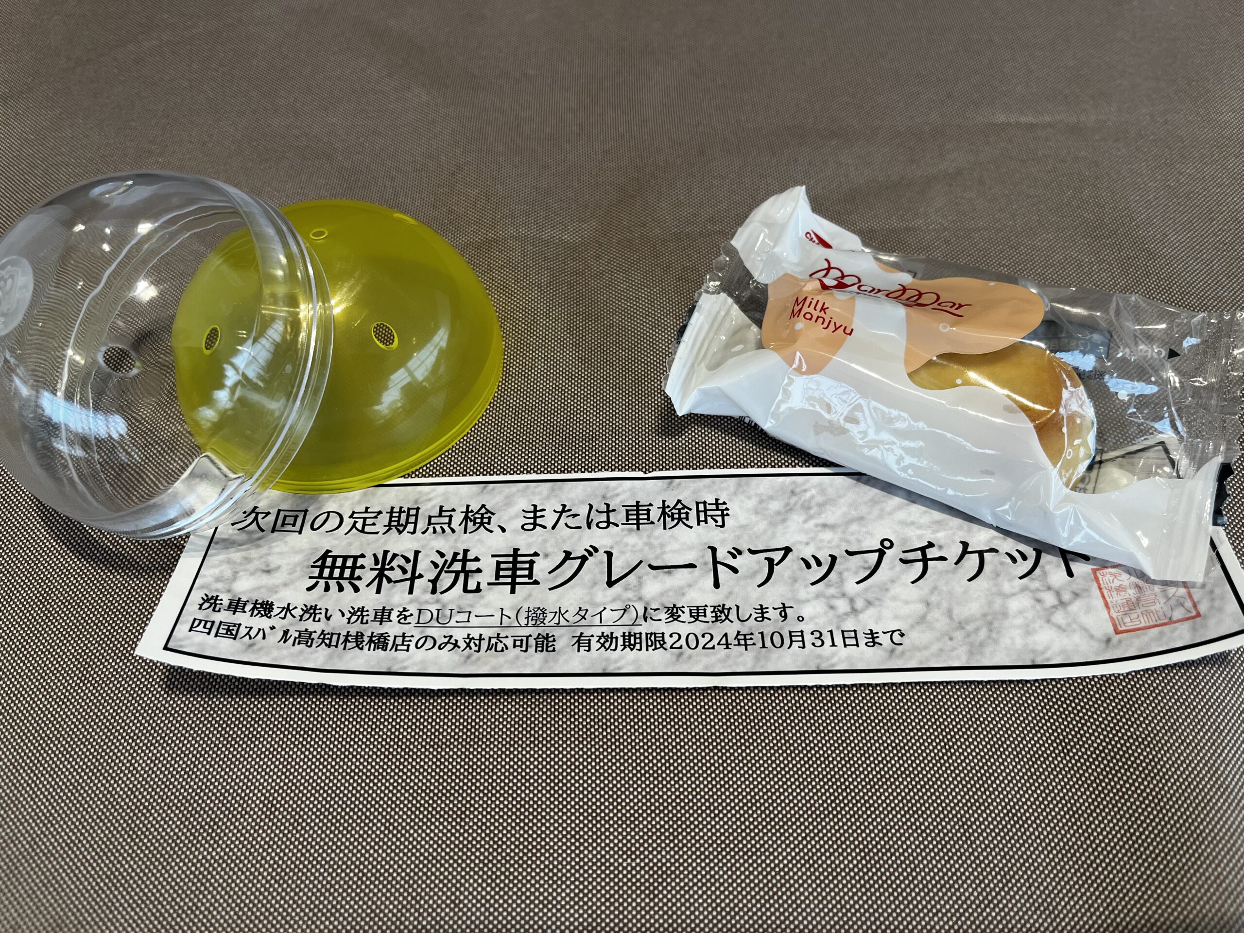 点検時にサービスでしている水洗い無料洗車を撥水タイプへとグレードアップするチケットが入っています!