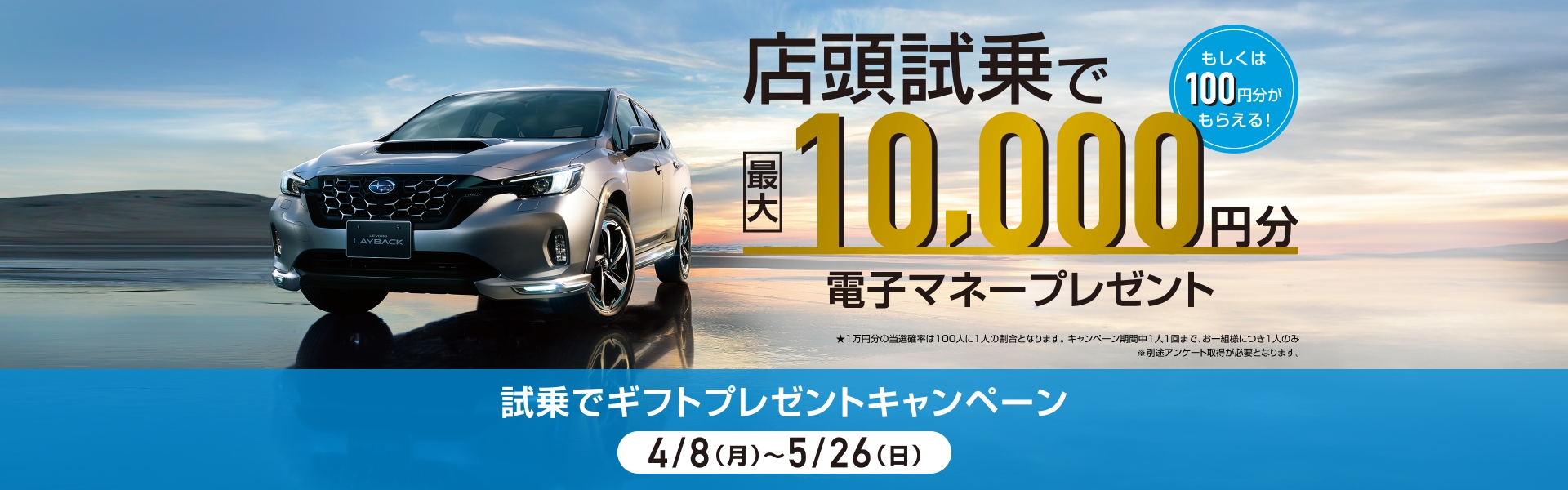 試乗で電子マネープレゼントキャンペーンも開催中です。