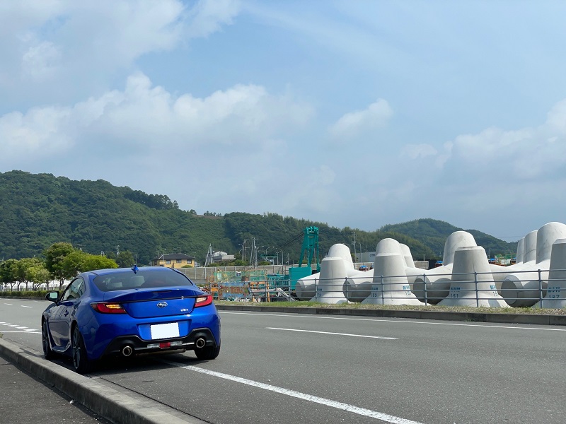 テトラポッドと出発前のSUBARU BRZ
