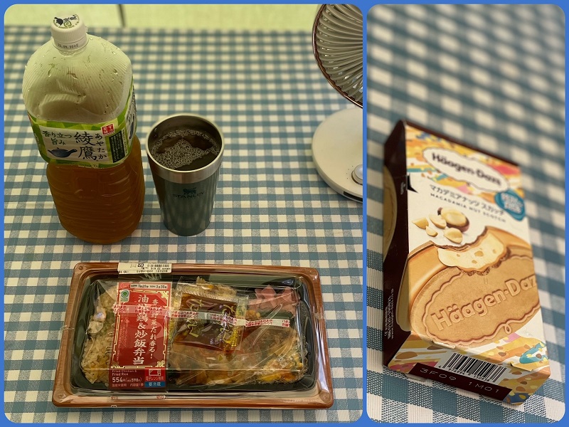 一度目のシャワータイムを経て少し遅めのランチは手抜きでコンビニ弁当と夜のデザートに取っておいたハーゲンダッツも暑さの勢いそのままに食べてしまいました。